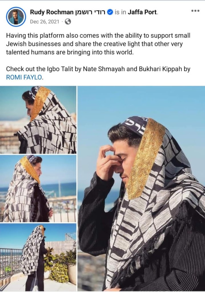 A talented Nigerian Tallit maker, Nate Shmaya, Has been recognized and granted license by Chabad, an international Jewish organization base in Nigeria. Nathaniel Ben Abraham is a Jewish entrepreneur from Nigeria, who is also a well known Chazzan in Nigeria. Nathan Ben Abraham, nicknamed Nate Shmaya hails from Ebonyi state Nigeria. Nate’s tallit brand received an international visibility after he got patronized and promoted by a well known Jewish right activist, Rudy Rochman in December 2021.